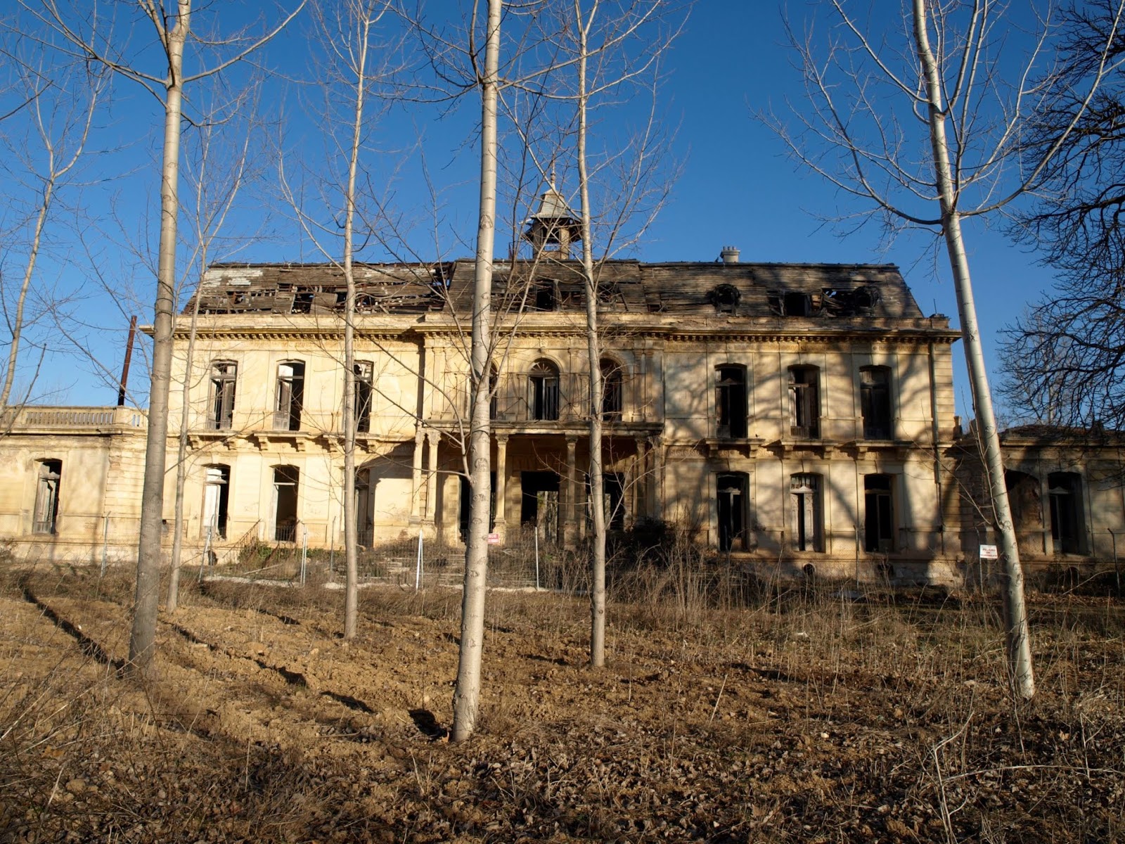 El palacio se levantó a comienzos del siglo XX por iniciativa de Enrique Gosálvez, inspirándose sin tapujos en el estilo francés aplicado a este tipo de residencias señoriales. Lo podemos ver acercándonos a donde se encuentra o, de una forma más aproximada, a través de la imagen. Tiene un cuerpo central de dos plantas, rematadas en mansardas, tan parisinas ellas, con prolongación en dos alas laterales perpendiculares al cuerpo principal. La entrada principal se organiza mediante un porche aterrazado, con escalinata, ahora ya tan deteriorado que apenas si puede apreciarse. En lo más alto, un coqueto torreón central abuhardillado corona con elegante ligereza la fachada, en la que las ventanas, casi todas abiertas, entreabiertas, rotas, desvencijadas, apenas si protegen ya de nada. Separando maderos puede asomarse la mirada, levemente, para contemplar el interior e intentar así, con ese vistazo lejano, adivinar cómo eran aquellos amplios salones, aquellos veinte dormitorios y soñar, imaginar, con la ayuda de imágenes vistas en otros recintos parecidos, de qué modo se habían amueblado esas dependencias, con objetos traídos de todos los países del mundo, sobre todo de los más exóticos. Un poco retirada, separada por la alameda que envuelve el palacio, la capilla neogótica comparte con la residencia principal el mismo sentimiento decadente.