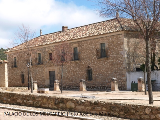Pero no es de eso de lo que quería hablar hoy, aunque es tema interesante, suficiente para generar literatura viajera, sino de uno de los elementos urbanos más singulares no sólo de Barchín del Hoyo (que tiene varios, incluido el elegante Ayuntamiento y la vistosa iglesia parroquial) sino de los pueblos situados en el entorno más inmediato y no es otro que una soberbia casa palacial a la que se conoce indistintamente con el nombre tradicional de los Zapata de Perea o el más moderno de los Melgarejo. Es un edificio de auténtica solera, dentro de la habitual severidad sin excesivos adornos que es propia de la arquitectura de nuestra tierra, en la que no suele haber espacios para alfeñiques decorativos. Aquí manda la piedra, el trazado rectangular, la severa portada adintelada, el reparto regular de las ventanas, todas ellas protegidas por las imprescindibles rejas de forja castellana. Construido en el siglo XVI y reformado en el XVIII, el edificio forma parte de una amplísima finca que aún conserva sus utilidades agropecuarias, cuya fachada principal, la que da a la plaza, se estructura mediante dos plantas, en disposición regular y tiene como elemento más destacado la portada de sillería, adintelada, con un escudo recercado en su parte superior central que culmina en un frontón unido con elegante disposición de volutas al dintel. El friso situado en la parte superior presenta también abundante decoración.