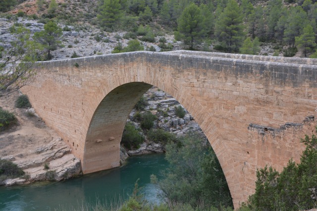 Todo eso es pasado, remembranzas con las que contar historias a la luz de la lumbre, si ahora se mantuviera semejante costumbre. La aldea llegó a tener 30 edificios y un centenar de habitantes que, seguramente, no eran conscientes de la considerable belleza del puente que tenían ante la vista y que sigue existiendo, elegante, poderoso, capaz de tolerar sin problemas el paso de los ganados. Existía ya en 1575, porque la Relación Topográfica lo encomia de manera considerable, al explicar que es «de piedra labrada, fecha a costa de esta villa y repartimientos de vecinos y con gran gasto, que duró años (…) de un sólo ojo y de gran altura y anchura. Pasan carros y gentes. Dicen ser la mayor y mejor y de grandes y mayores piedras del reino y pasan bestias, y todo lo demás, de Toledo y otras partes a Valencia y Requena». De ese relato se deduce que el puente estaba recién construido, financiado por los propios vecinos de Iniesta, seguramente porque se había arruinado otro anterior, de madera, al que se mencionaba unos 30 años antes. Y ahí está, sigue estando, ofreciendo a la vista una impresión visual de consideración, con su atrevida altura, 80 metros desde su borde hasta la superficie del río, pero lo más espectacular es que tiene un solo ojo, caso nada frecuente en este tipo de construcciones, lo que le convierte, dicen, en una de las más importantes obras de ingeniería en Europa en tal tipo de construcción.