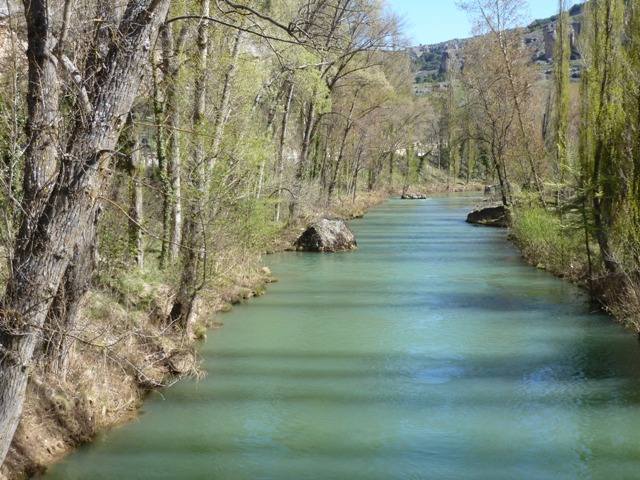 Esa mirada nos devuelve la imagen de un río que va siendo comido apresuradamente por la maleza de sus riberas, sin que ninguna autoridad muestre preocupación alguna por limpiarlas para dejar diáfana la superficie de las aguas, escasas por otra parte, que en este tiempo se deslizan cansinamente en espera de que lleguen mejores oportunidades de conseguir un caudal suficiente, similar al que tuvo en momentos de mayor fecundidad fluvial. El Júcar, ahora, es un río que se desliza suavemente, sin querer molestar, sin recibir de sus presuntos cuidadores ninguna muestra de cariño. Quienes pasean por los senderos asfaltados apenas si tienen tiempo para dirigir una rápida mirada al cauce, mientras mantienen el ritmo apresurado de sus pasos gimnásticos. Quizá las ninfas que lo habitan han sentido un temblor emocionado al conocer que en un futuro no muy lejano pueden surgir ideas encaminadas a proporcionar vida a un río tan hermoso, tan poético, tan mágicamente reproducido en pinturas y fotografías, objeto incluso de melodías musicales, pero tan poco aprovechado por los habitantes de la única ciudad por donde pasa. Dormita el Júcar, dejándose llevar por la casi inexistente corriente, mientras sirve de espejo para que en él se reflejen las imágenes de Cuenca y en algún lugar, todavía no señalado, personas inteligentes piensan en qué se puede hacer para que el río, además de pasar, se quede y forme parte intrínseca de la ciudad.