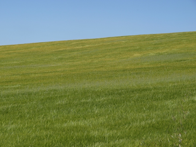 Es admirable la visión dilatada de la tierra, totalmente ocupada por los sembrados hasta donde la vista alcanza. A veces, en ese panorama, un árbol solitario se mantiene enhiesto, sabiamente protegido. Puede ser un pino, quizá una carrasca: incluso las amapolas, lujuriosamente rojas, aunque dicen que son dañinas, o las margaritas espontáneas surgidas al borde de un camino, aportan su leve apunte cromático a esta sinfonía de colores que se ha apoderado del campo en esta primavera apenas mediada. Para los urbanitas, amantes del asfalto, el tráfico y las terrazas, la visión tiene mucho de vuelta a los orígenes, de retroceso a un tiempo en el que todo era agricultura mediante la vinculación directa y total del hombre con la tierra. Ahora, al menos, nos queda la contemplación de este maravilloso espectáculo.