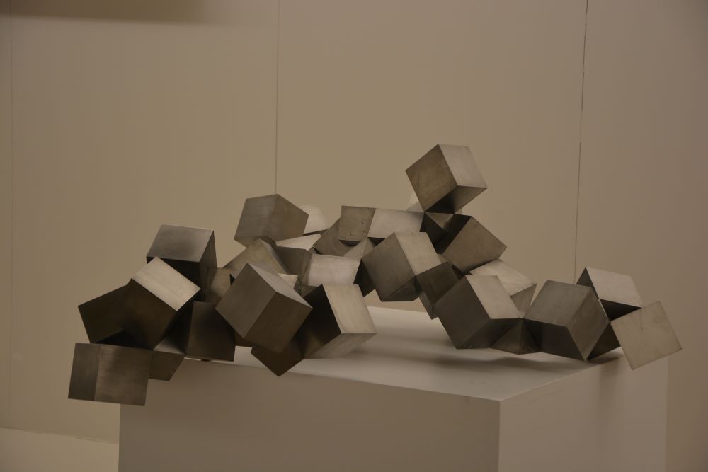 La obra de Torner, pura, limpia, de una claridad apabullante, se traduce en una muestra del arte “para pensar” que ha desarrollado el artista a lo largo de su vida, porque como explica Marta Moset, directora de la Fundación, su singularidad reside en esa manera de abordar cada obra: no se trata únicamente de un estilo visual, sino de un estilo de pensamiento. “Como decía Zóbel, en Torner no hay un estilo de hacer, sino un estilo de pensar”, recalca Moset. Desde sus inicios figurativos en los años 50 hasta sus abstracciones matéricas y conceptuales, su obra ha evolucionado con coherencia, pero también con riesgo, buscando siempre la excelencia. “Esa búsqueda de la belleza invisible, más que de la belleza evidente, es uno de los motores de su trabajo”, añade.
